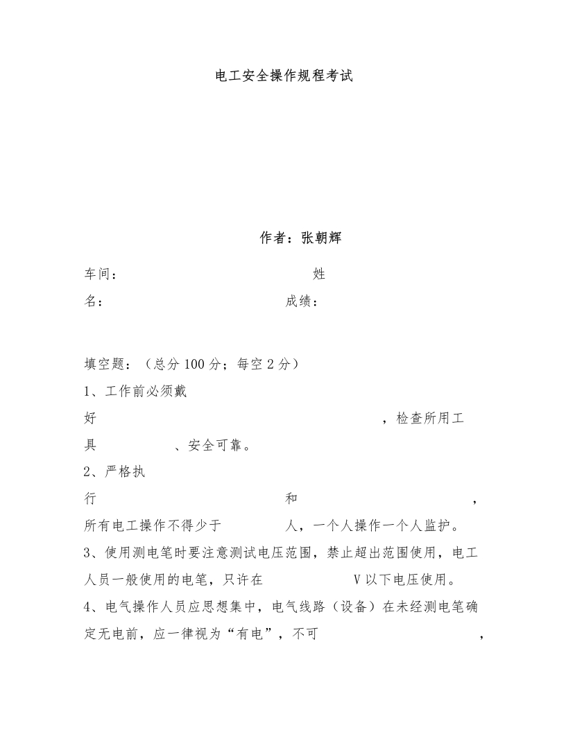 电工安全操作规程考试作者:张朝辉