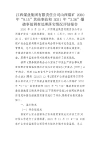 江西煤业集团有限责任公司山西煤矿2020年9.15其他事故和2021年2.28爆破事故调查处理落实情况评估报告