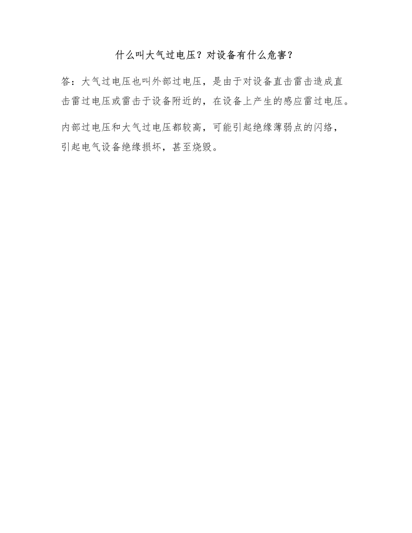 什么叫大气过电压?对设备有什么危害?