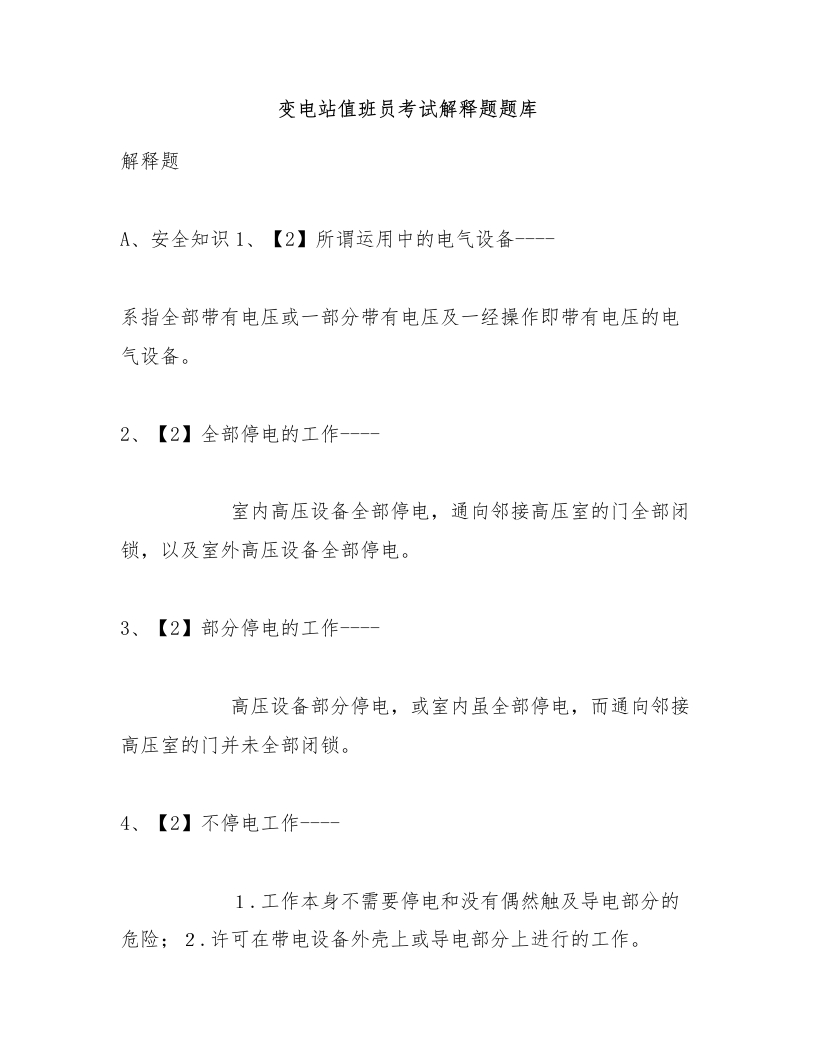 变电站值班员考试解释题题库