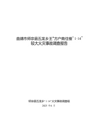 曲靖市师宗县五龙乡王方户商住楼114较大火灾事故调查报告