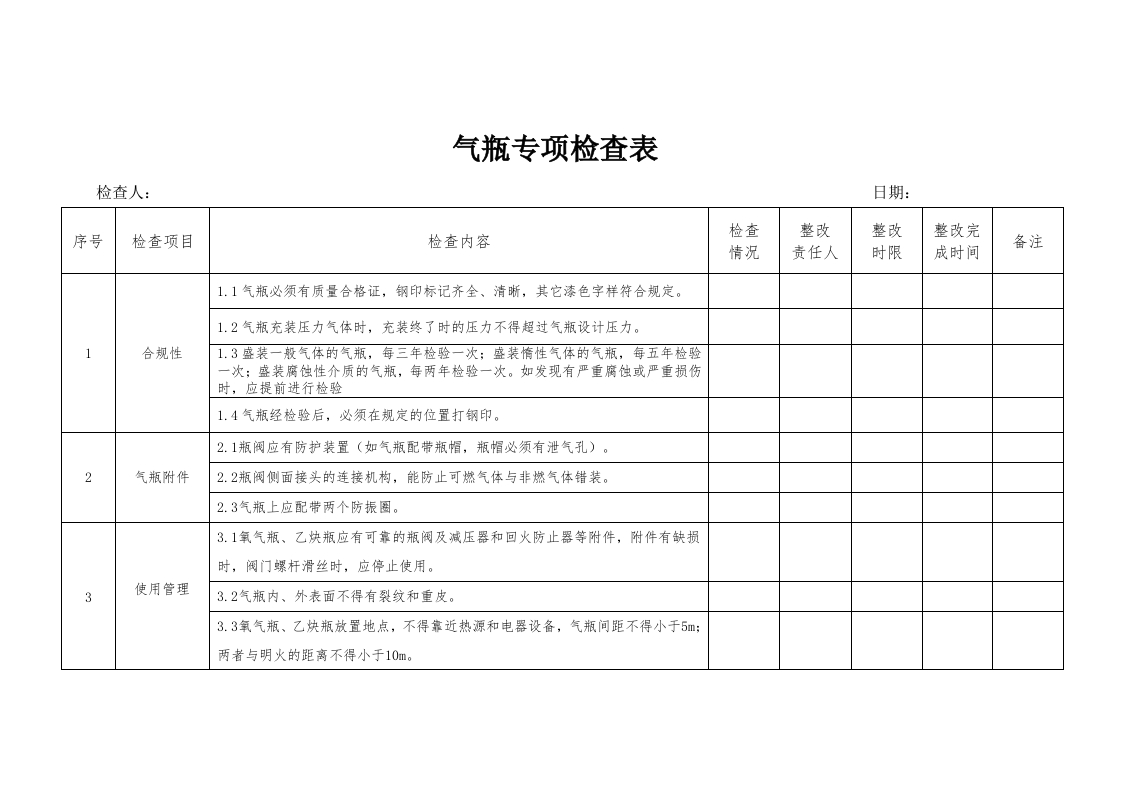气瓶专项检查表