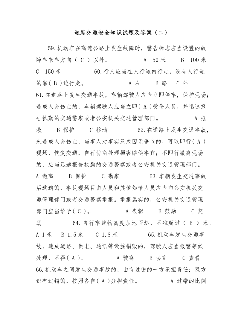 道路交通安全知识试题及答案(二)