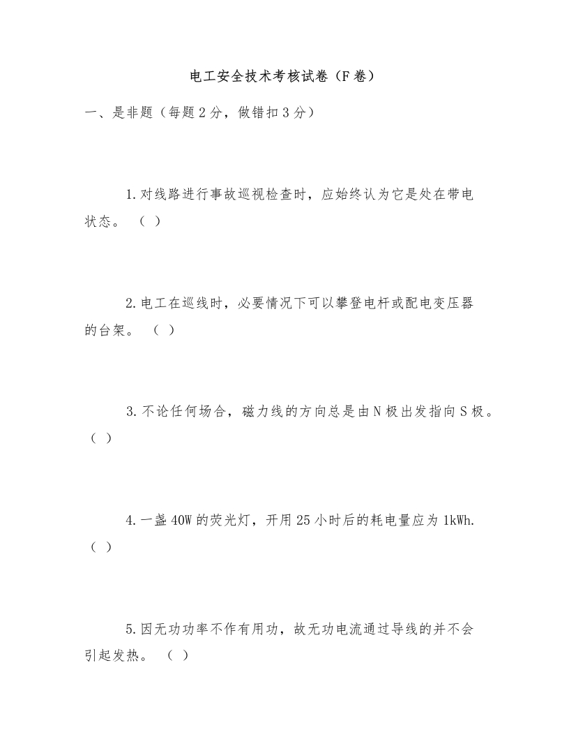 电工安全技术考核试卷(F卷)