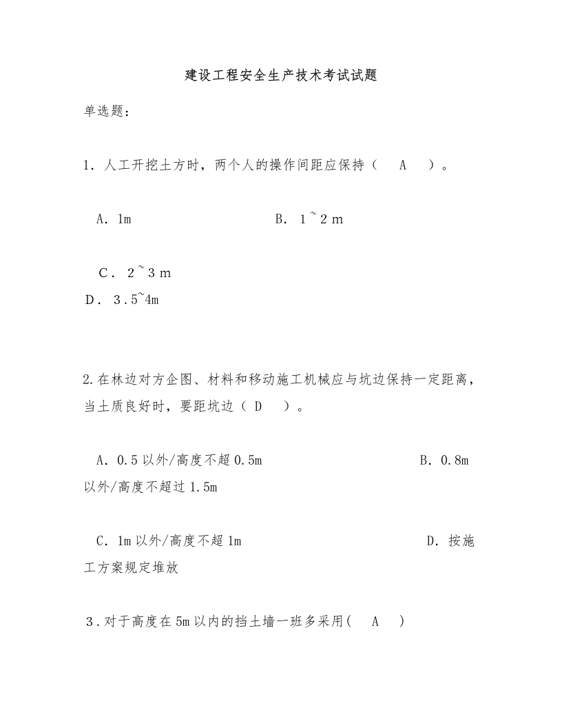建设工程安全生产技术考试试题