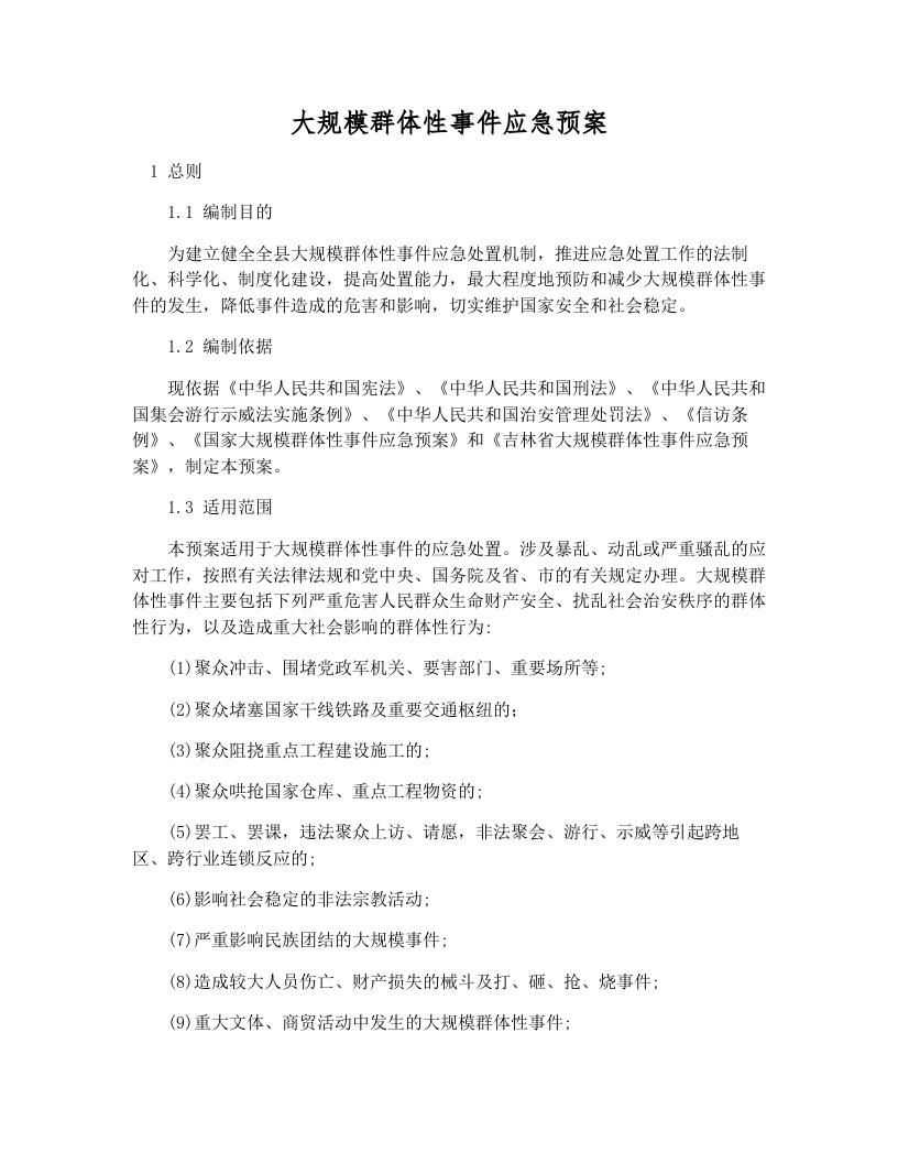 大规模群体性事件应急预案