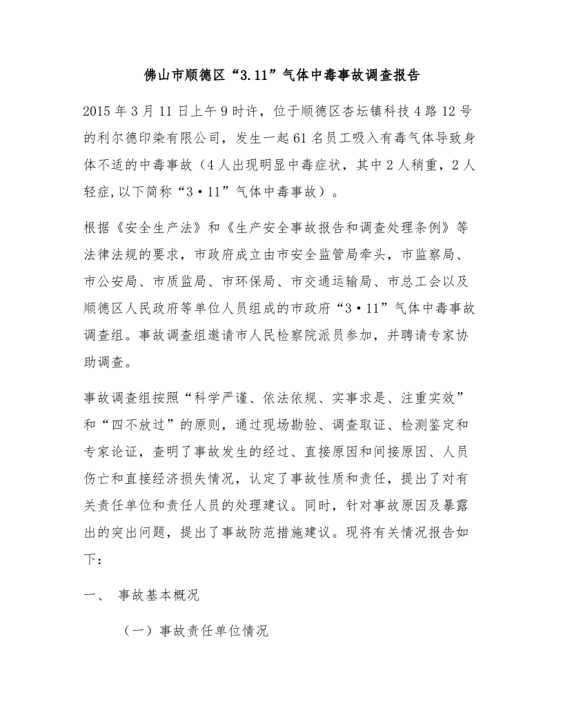 佛山市顺德区“3.11”气体中毒事故调查报告