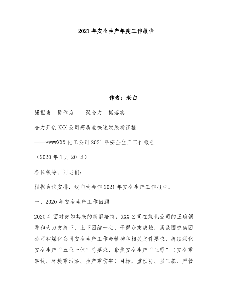 2021年安全生产年度工作报告作者:老白