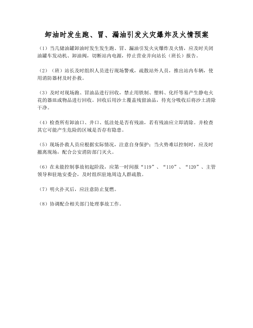 卸油时发生跑、冒、漏油引发火灾爆炸及火情预案