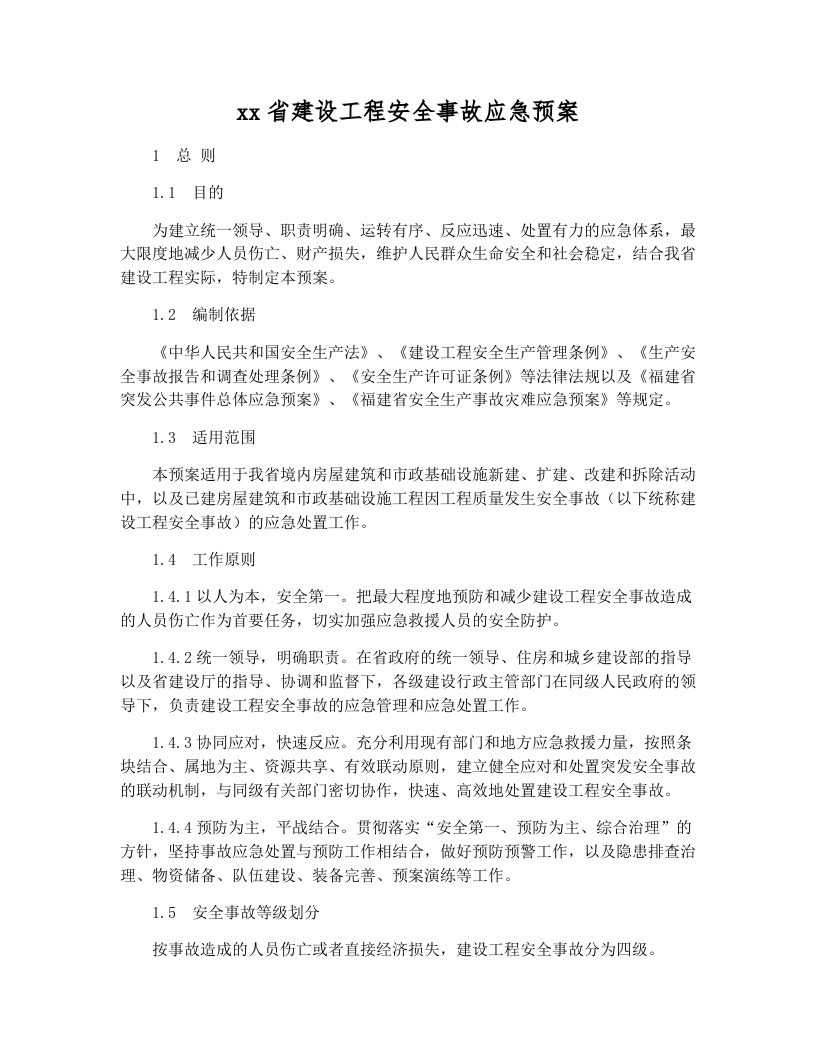 xx省建设工程安全事故应急预案