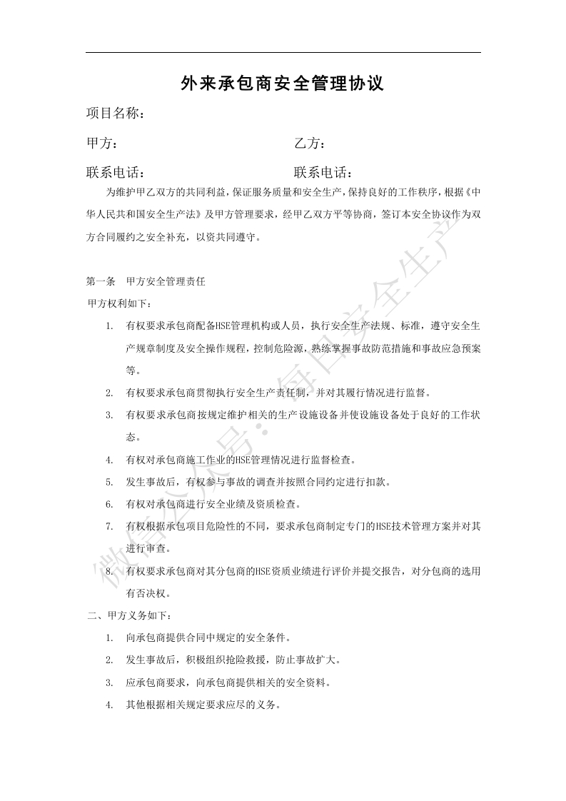 首页安全课件承包商安全外来承包商安全管理协议(标准版范本)
