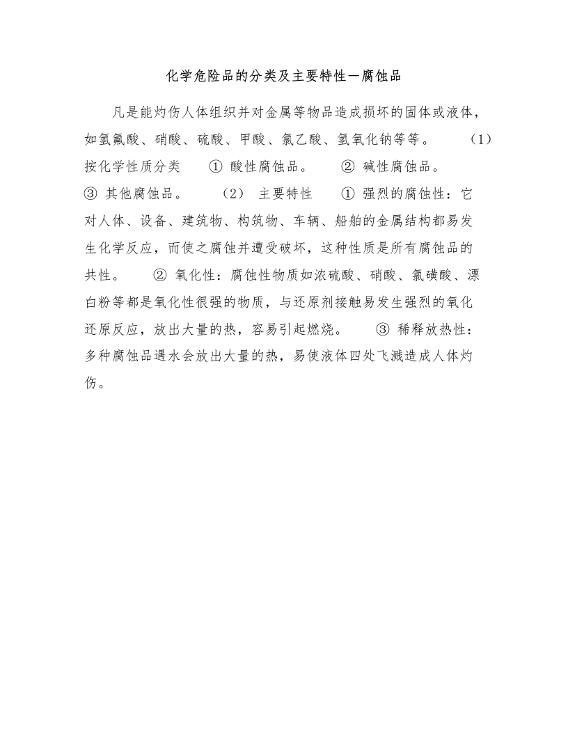 首页安全题库安全词典化学危险品的分类及主要特性-腐蚀品