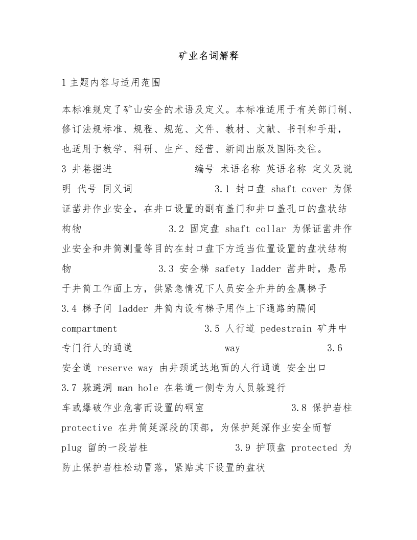 矿业名词解释