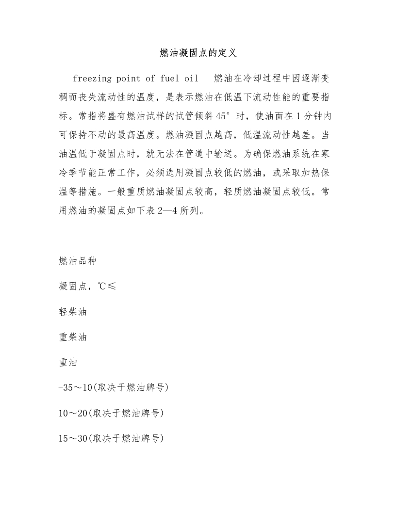燃油凝固点的定义