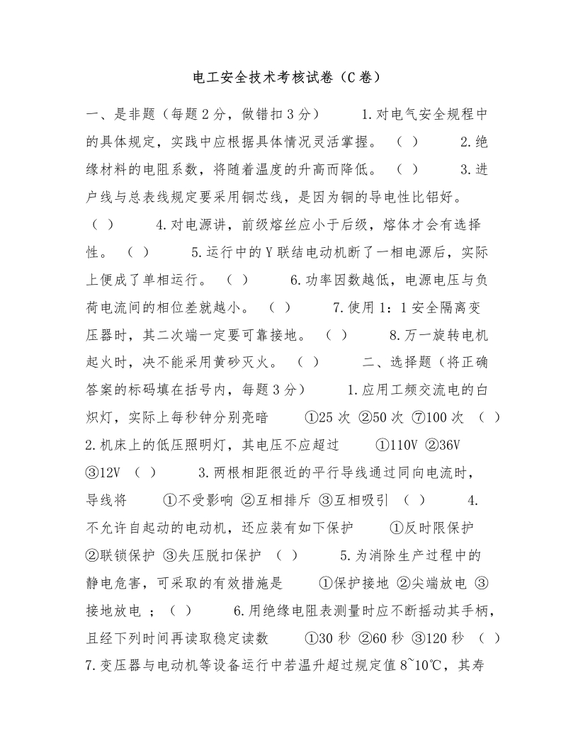 首页安全题库电力试题电工安全技术考核试卷(C卷)