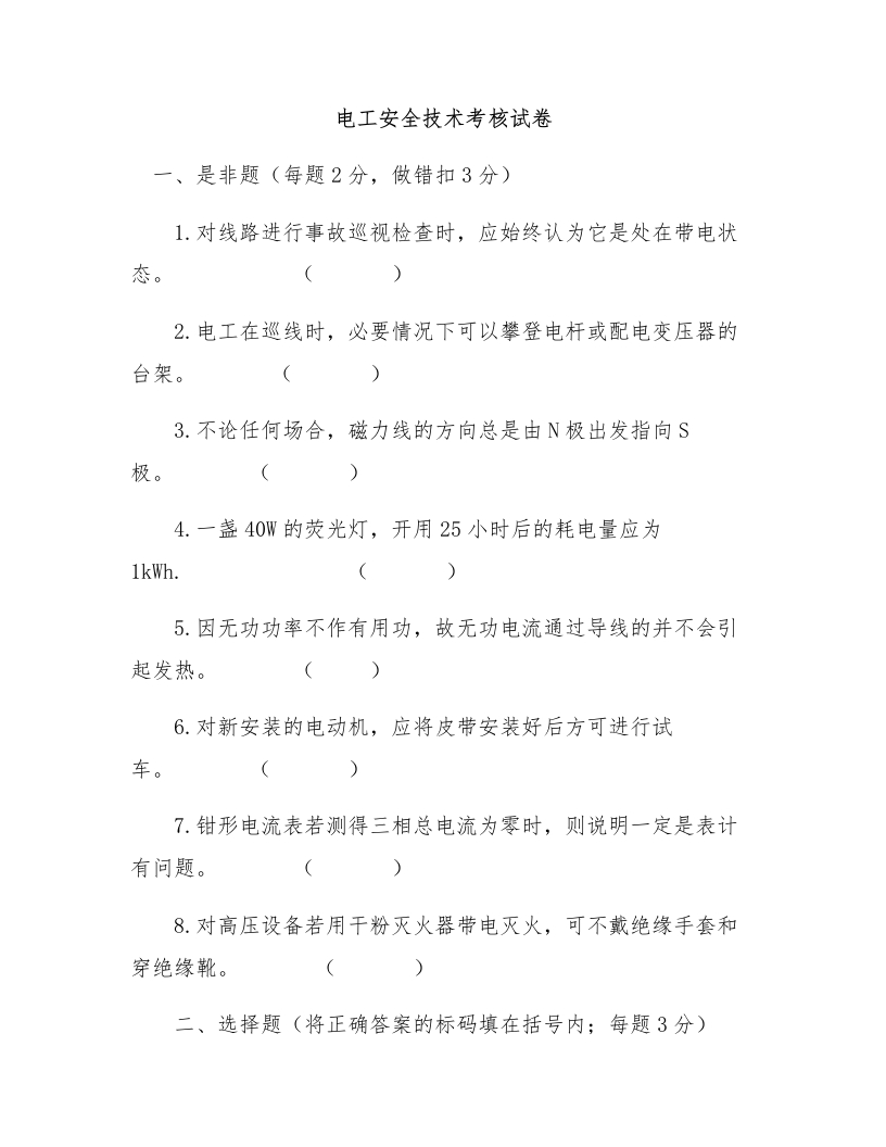 电工安全技术考核试卷