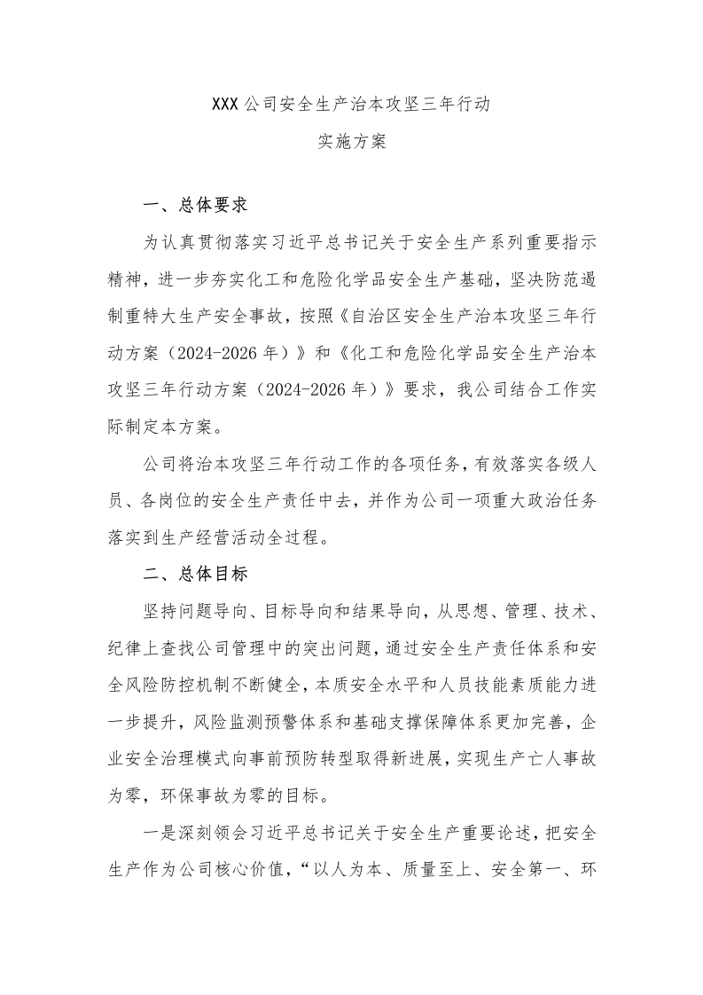 公司安全生产治本攻坚三年行动方案(-)(模板)