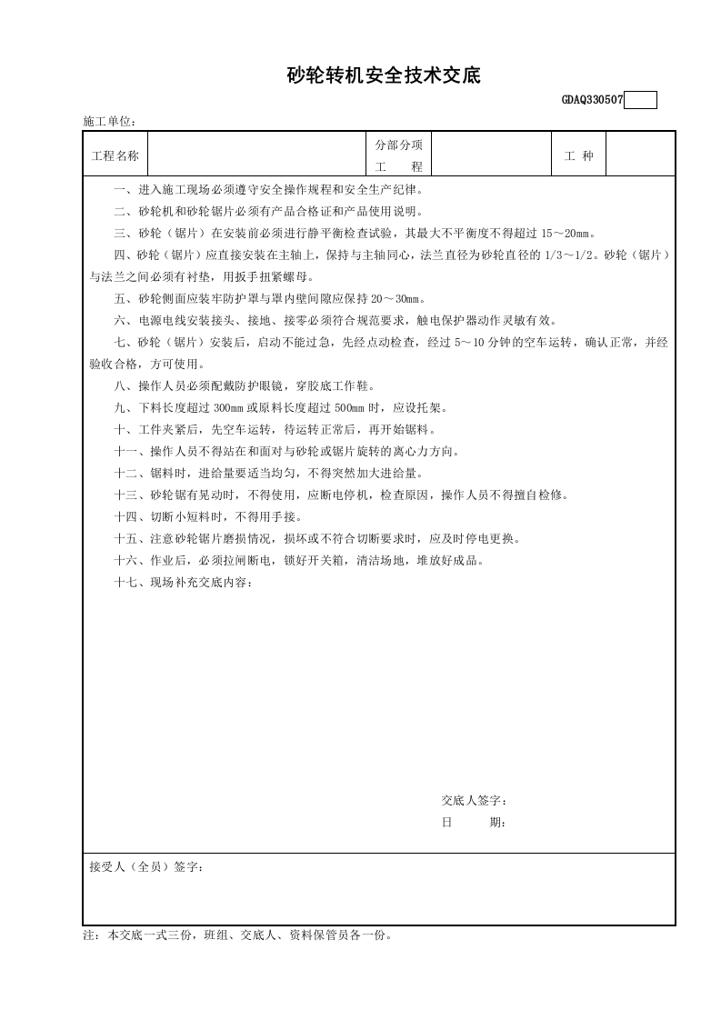 首页安全文档综合7砂轮转机安全技术交底GDAQ330507