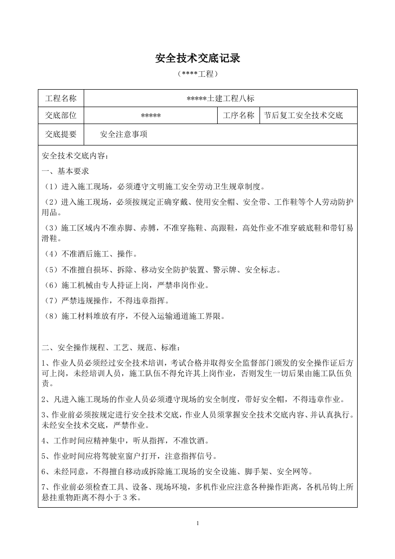 首页安全课件节后复工2025春节节后复工安全技术交底--范本