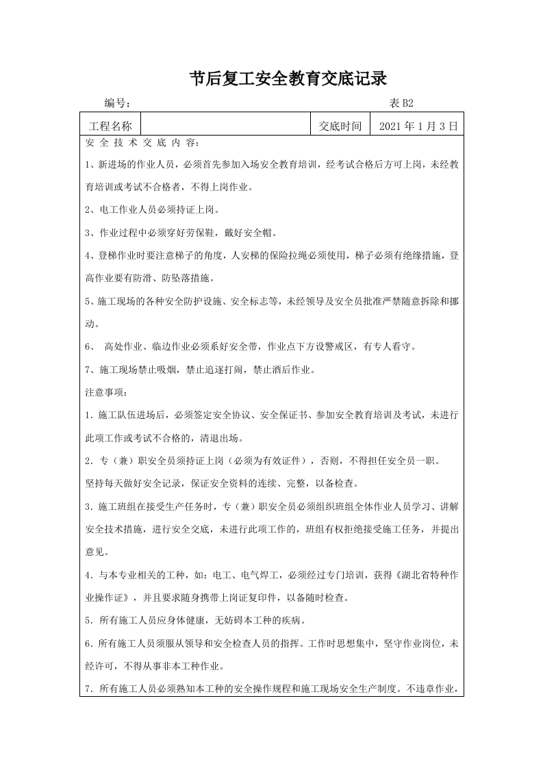 首页安全课件节后复工2025春节节后复工技术交底记录