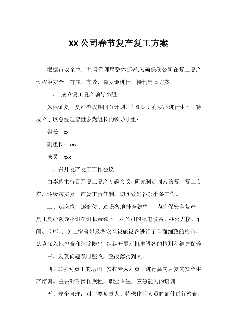 极简版节后复工复产方案