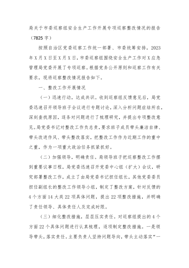 局关于市委巡察组安全生产工作开展专项巡察整改情况的报告(7825字)