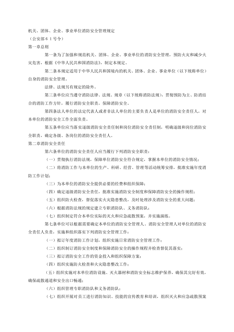 首页安全文档管理制度机关团体企业事业单位消防安全管理规定