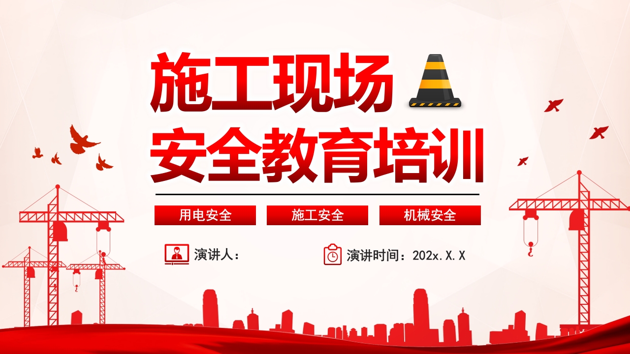 安全教育培训用电安全施工安全机械安全演讲人:演讲时间:202x.X.X