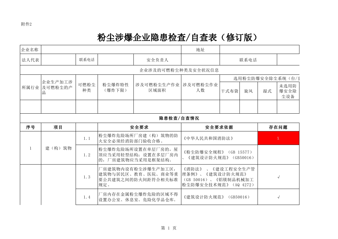 首页专业资料粉尘粉爆粉尘涉爆企业隐患检查自查表(修订版)