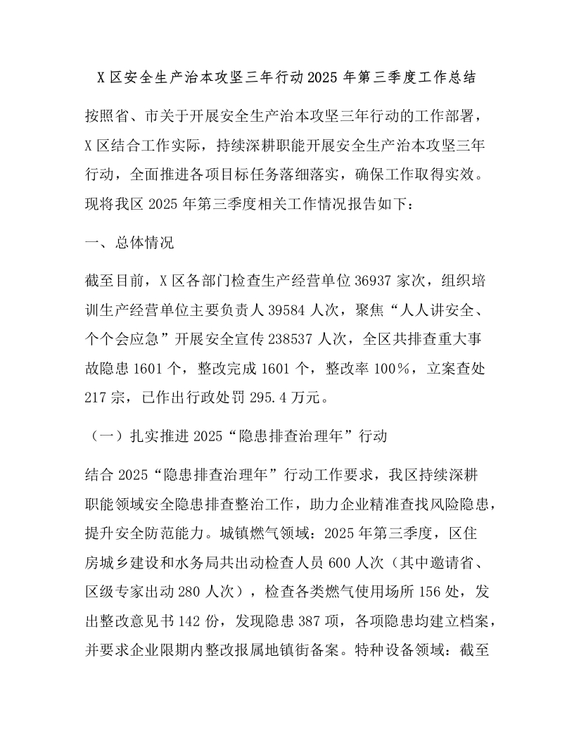 首页安全文档综合X区安全生产治本攻坚三年行动2025年第三季度工作总结