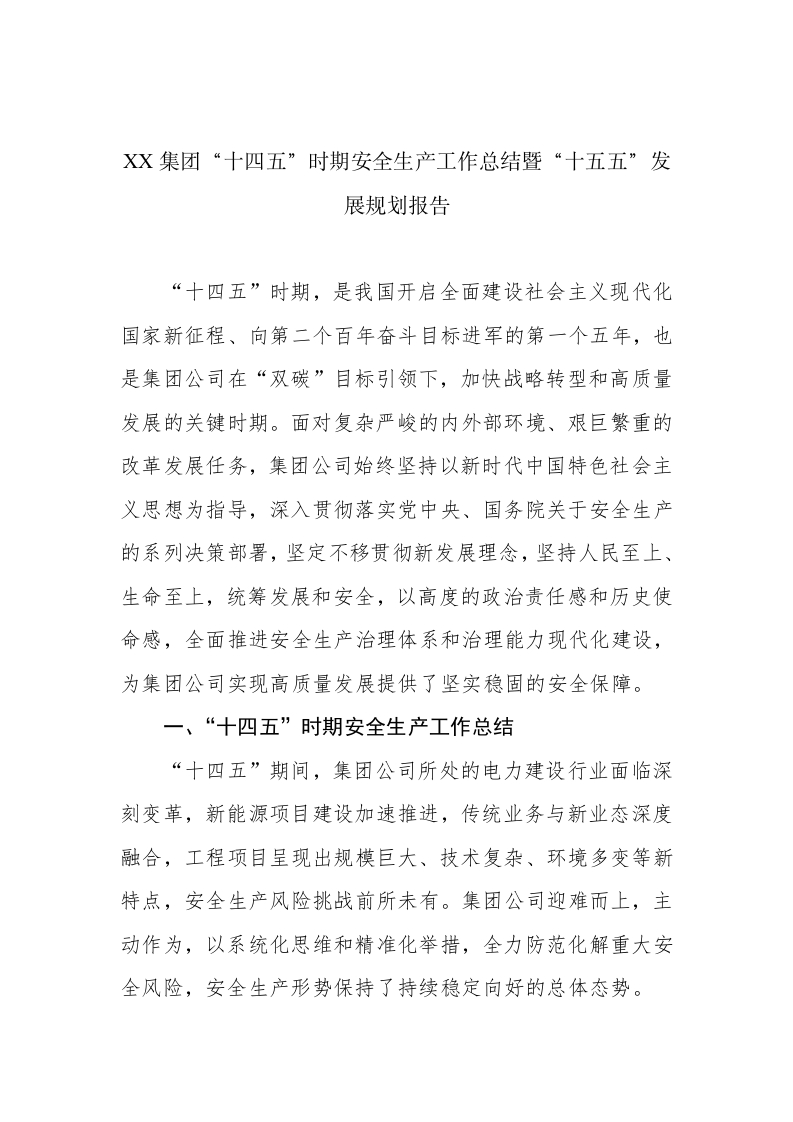 公司“十四五”时期安全生产工作总结暨“十五五”发展规划报告