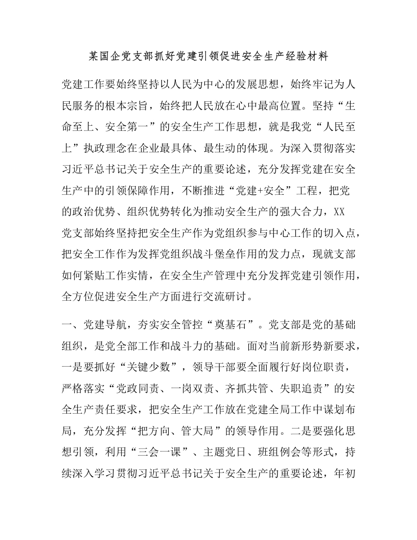 首页安全文档综合某国企党支部抓好党建引领促进安全生产经验材料