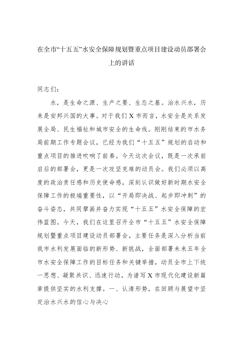 在全市“十五五”水安全保障规划暨重点项目建设动员部署会上的讲话