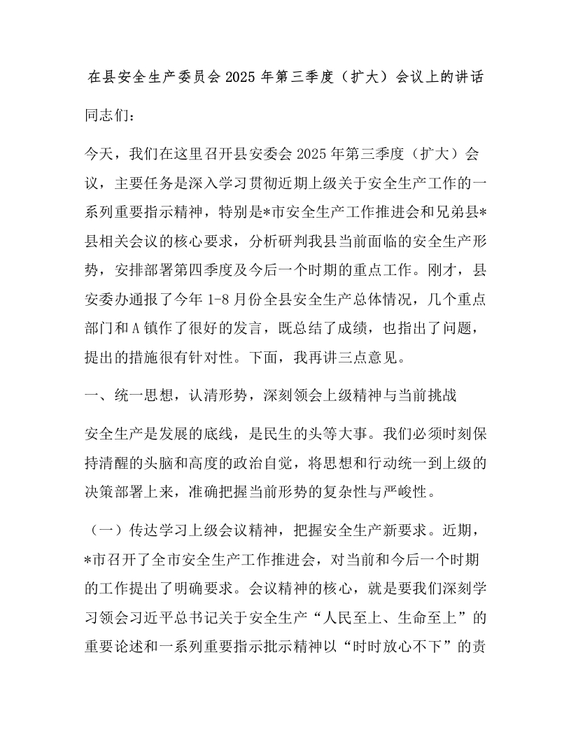 在县安全生产委员会2025年第三季度(扩大)会议上的讲话