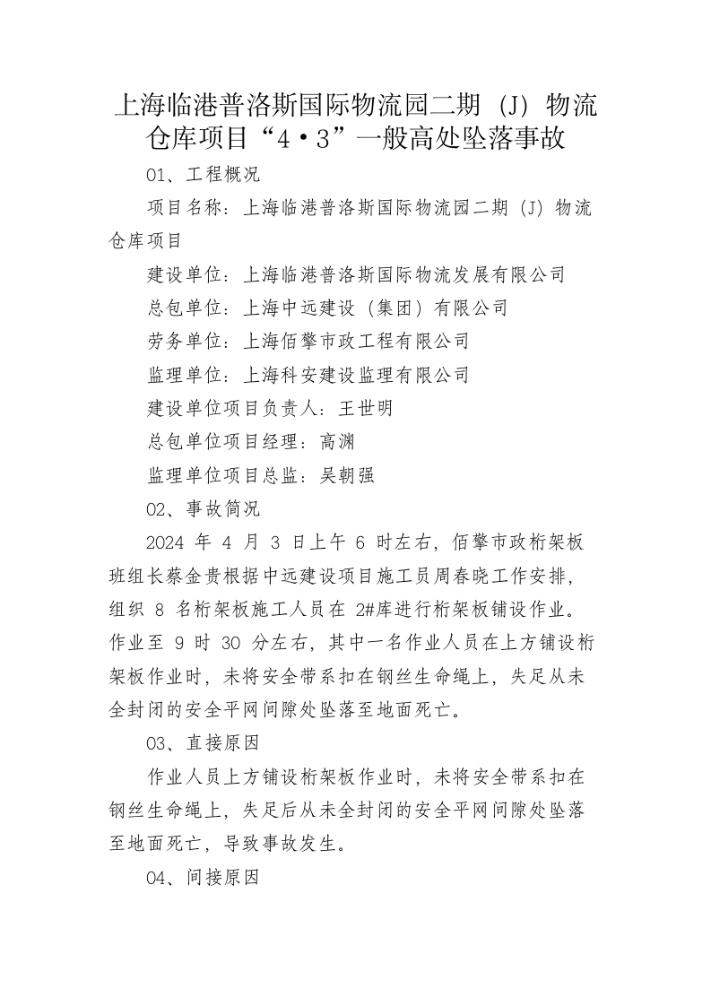 首页事故案例事故案例PPT上海临港普洛斯国际物流园二期J物流仓库项目43一般高处坠落事故
