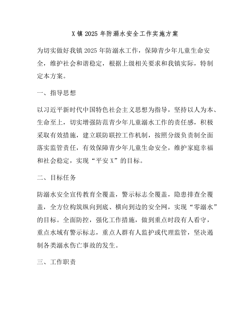 首页安全文档综合X镇2025年防溺水安全工作实施方案