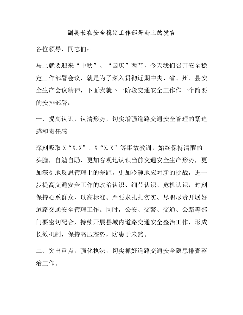 首页安全文档综合副县长在安全稳定工作部署会上的发言