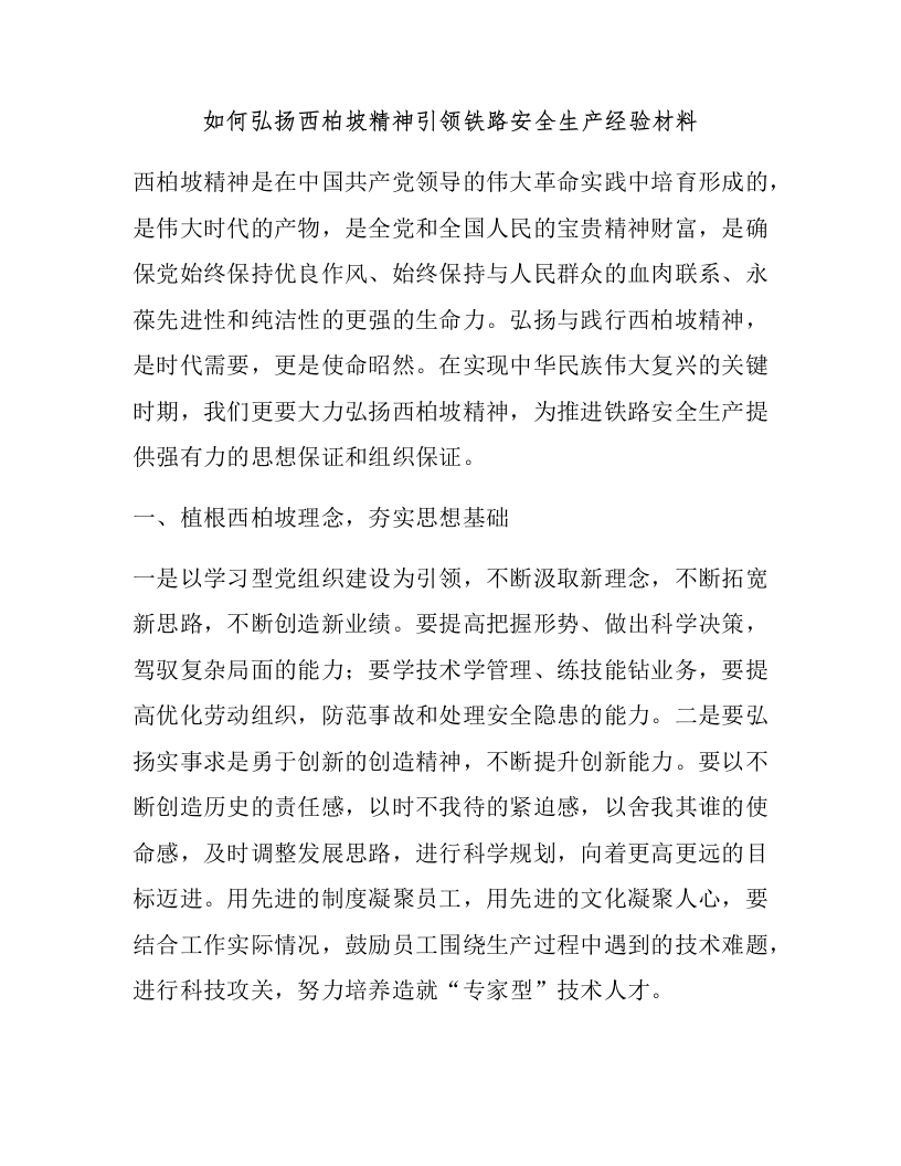 如何弘扬西柏坡精神引领铁路安全生产经验材料