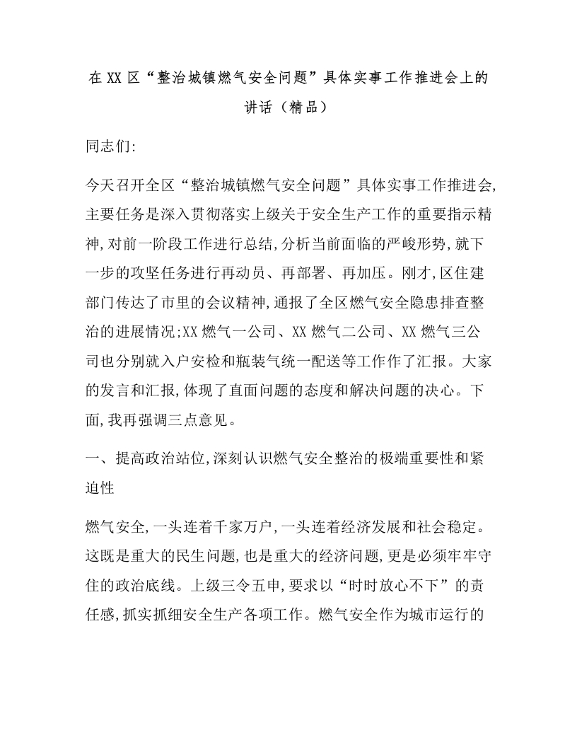 在XX区“整治城镇燃气安全问题”具体实事工作推进会上的讲话(精品)