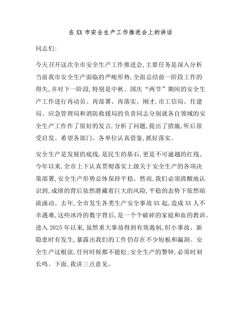首页安全文档综合在XX市安全生产工作推进会上的讲话