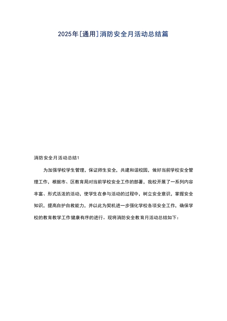 首页安全课件消防安全2025年通用消防安全月活动总结篇26页