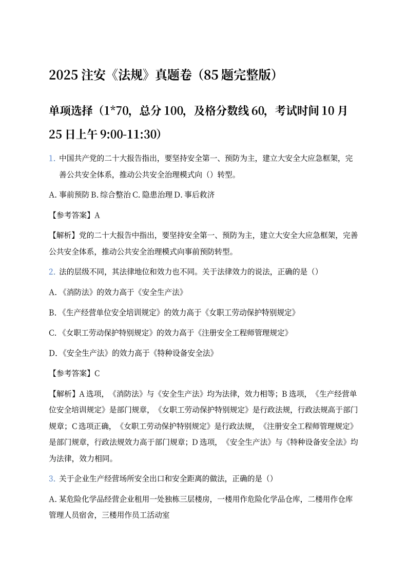 85道完整版注安法规真题