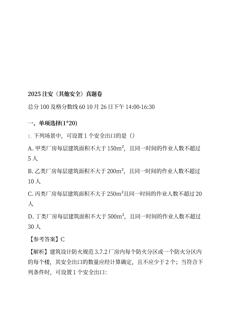 首页安全题库注安考试2025年注安实务《其他》真题及答案