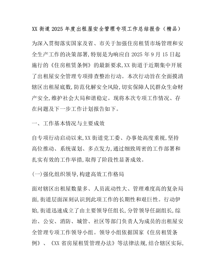 XX街道2025年度出租屋安全管理专项工作总结报告(精品)