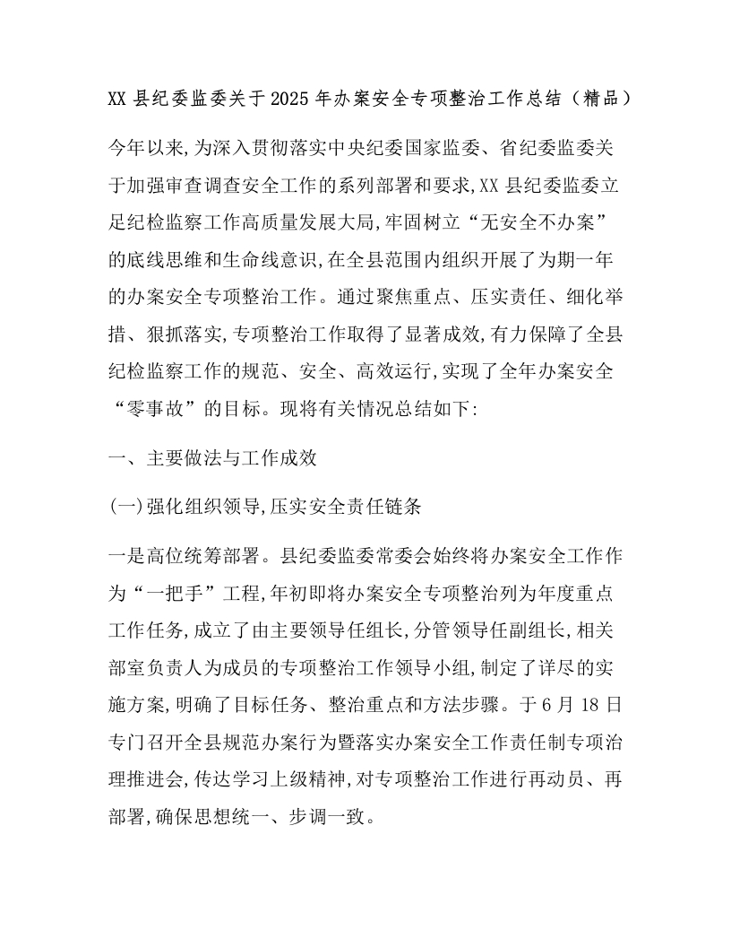 XX县纪委监委关于2025年办案安全专项整治工作总结(精品)