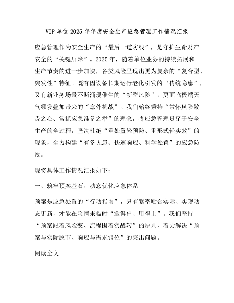 单位2025年年度安全生产应急管理工作情况汇报