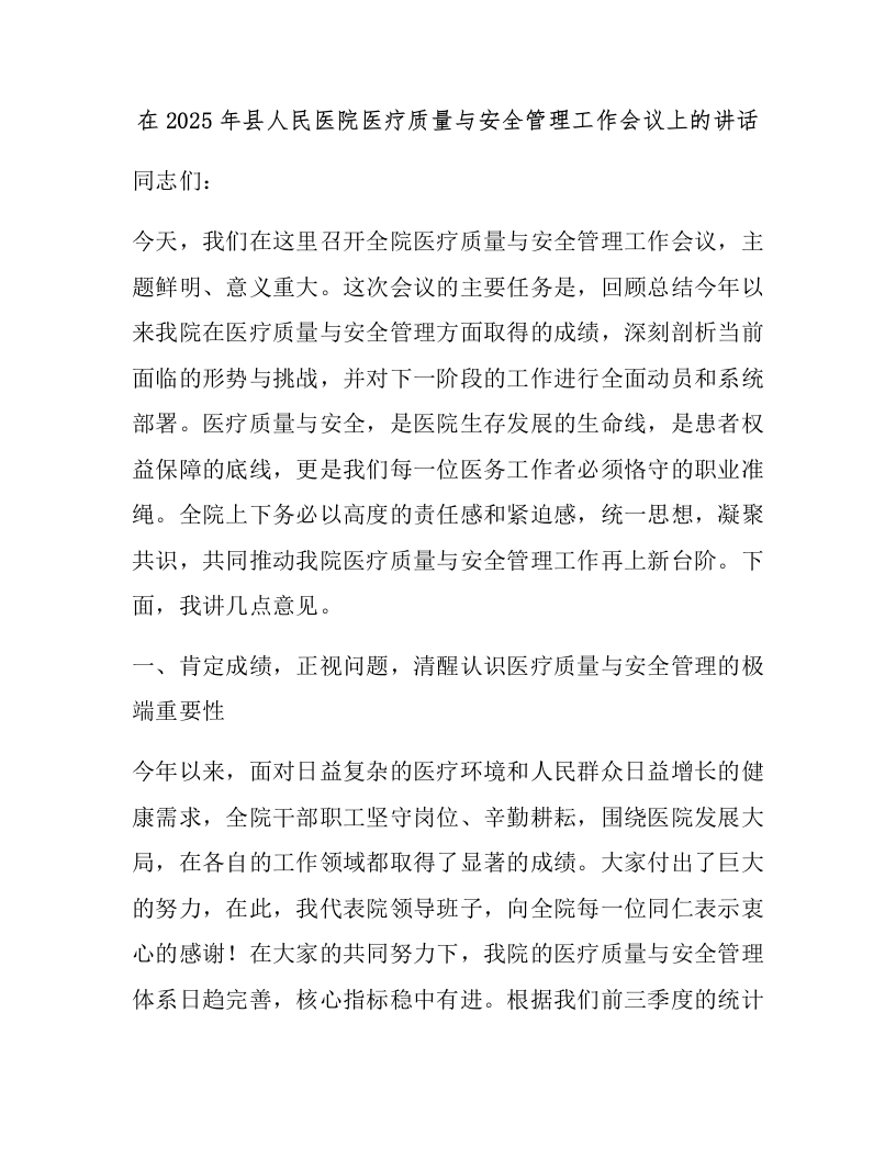 在2025年县人民医院医疗质量与安全管理工作会议上的讲话