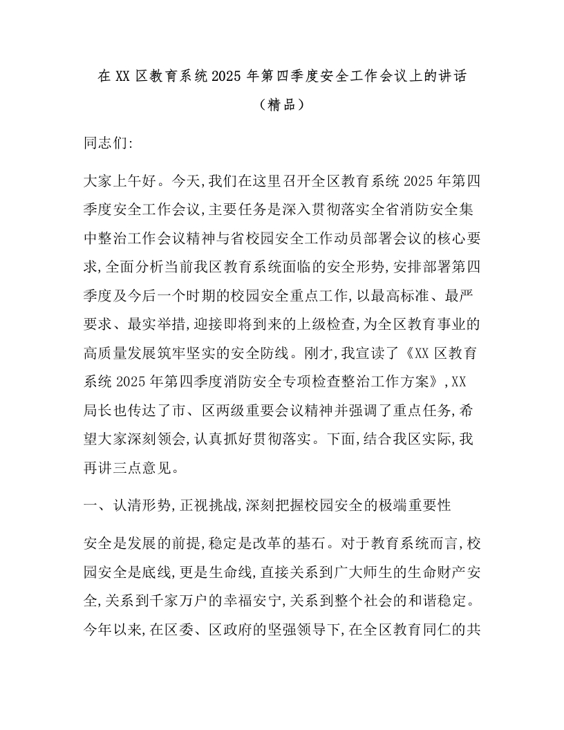 在XX区教育系统2025年第四季度安全工作会议上的讲话(精品)