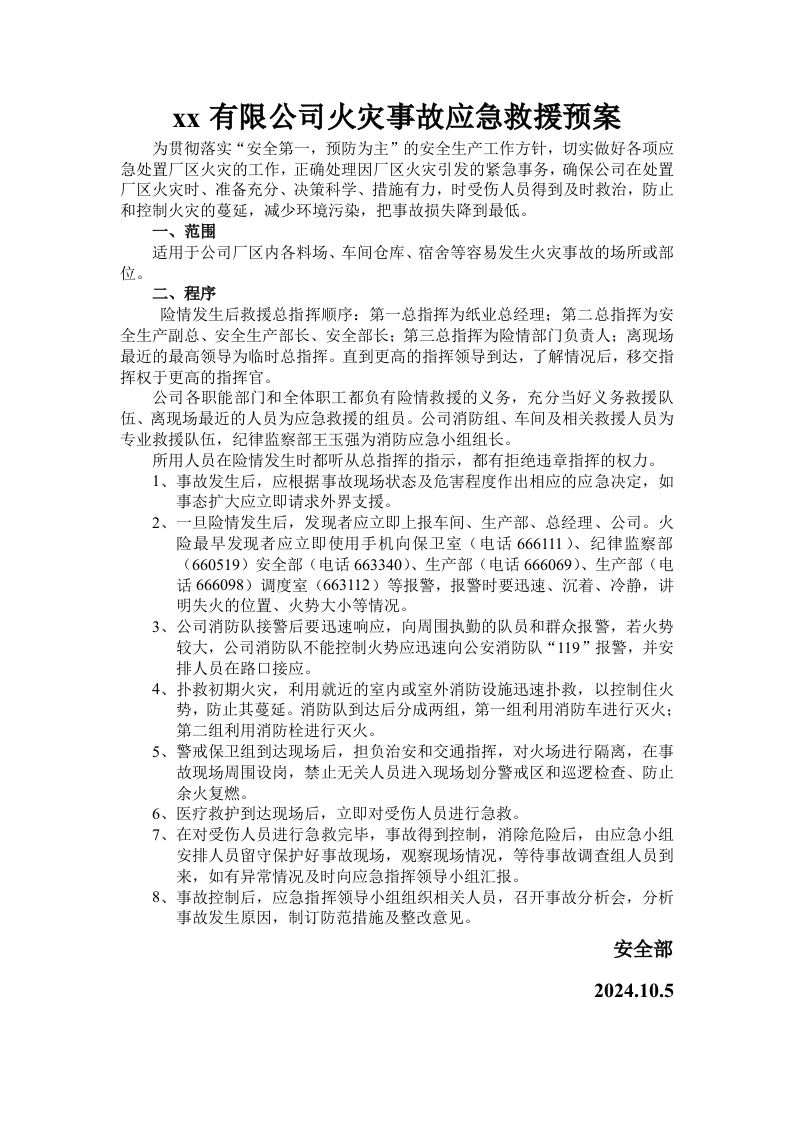 首页应急预案应急预案实例xx有限公司火灾事故应急救援预案