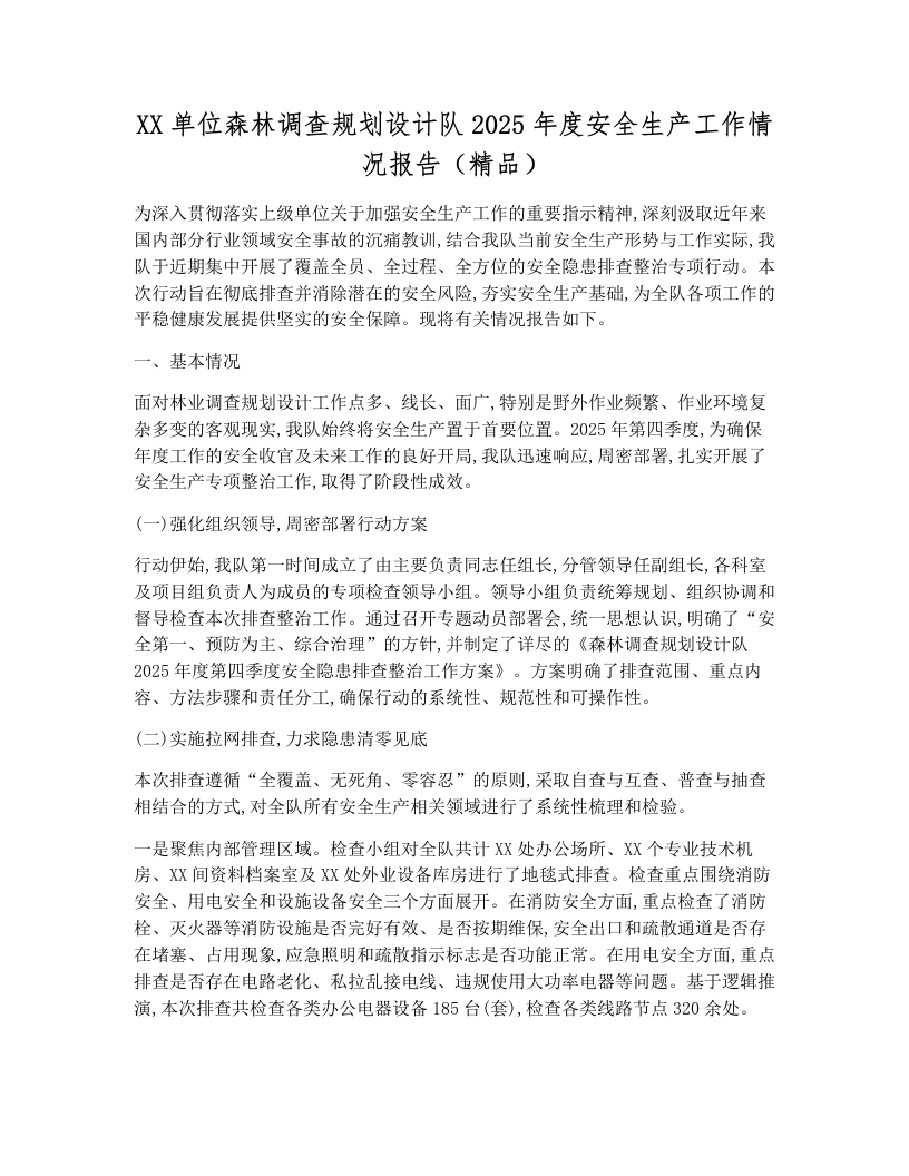 XX单位森林调查规划设计队2025年度安全生产工作情况报告(精品)